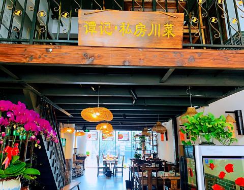 位于钦州北路田尚坊二楼,靠近柳州路。谭记的餐位分室内和室外部分,六月的上海坐在室外吃川菜是件很惬意的事情。他们家的菜品在川菜里中规中矩,说不上出挑,但味道还可以,象腰花和鸡胗,就是主材好像少了一些...