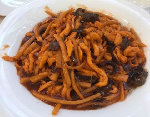 父亲喜欢这种老菜馆,特别是糖醋里脊,然后老爆三比较清淡,八珍豆腐还是不错的,菜量挺大的