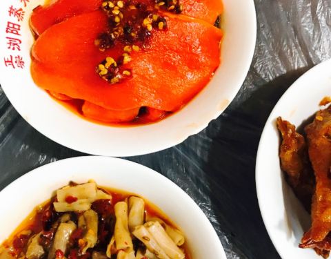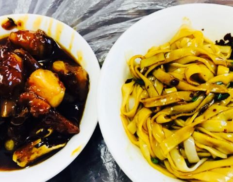 位置就在长郡中学大门口左边的弄堂里,一排都是凉菜的店,毛坨子是第二家。猪油拌粉很香很入味,每次都来,其实一条街味道都大同小异,说不上孰好孰坏。来过很多次,糖醋排骨是第一次点,实在好甜,感觉有些过分甜了,没什么醋的味道,大多是软骨。20元一份,只有一小碗,蛮贵的。