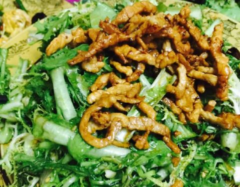 素烩汤小分量挺大的很好喝,蒜蓉油麦菜刚好特价就点了一份,味道很好,还点了一个忘了叫什么,是用干...