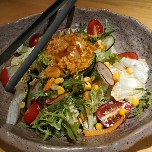 所谓酒香不怕巷子深,说的大概就是这种小店吧,隐匿在闹市中一个偏僻的角落里,稳稳地坐在金州区日本菜热门榜第1名的位置。 门口有少数几个停车位,不过大家都比较有数,开车来的人比较少,所以中午还是够用的。 外边有一个美丽的小院子,虽然不大,但是在这个位置,能有这么一个院子,已经是一件很幸福的事情了。 店铺装修很用心,进门以后是一个长长的吧台,方便食客边吃边欣赏制作过程,一楼还有几张四人台,二楼是包间。 服务像所有的日料店一样,都很优秀,热情又不过于热络,距离感很好。老板娘非常热情,打电话咨询以后,亲自到门口来领路,感谢。 因为中的是一个200元的代金券,于是就可着200块的标准,点了几个菜。 点了必点的三文鱼釜饭,又点了炸猪排、鸡肉丸子、时令蔬菜沙拉、炸薯条、牛肉盖饭和裙带菜乌冬面。之所以点了这么多主食,是因为感觉日料店普遍分量都比较小,怕不够吃,没想到菜量还是比较大的,足够吃了。 招牌的三文鱼釜饭,上来以后服务员还贴心的给拌好了,每一粒米饭都浸透了三文鱼的汤汁,真的很鲜美。因为是拿小锅做的,所以有的地方会有稍微硬一点的锅巴,配上香香的三文鱼,也很好吃。 牛肉盖饭刚端上来的时候稍微有一点点干,跟服务员要了一些汤汁拌进去,效果就好多了,美中不足是略微有一点点甜,小朋友不喜欢。 炸鸡肉丸子和牛肉盖饭有一样的问题,就是有点儿甜了。这里需要说明一下,这个甜有一个接受度的问题,我觉得还好,但是小朋友不喜欢,并不是说这两个东西就不好吃。其实我觉得吃日料吃的就是当地特色,如果真的改良了就没啥意思了。 炸薯条不错,酥脆可口,并且不是很咸,几乎变成了小朋友的主粮。 炸猪排、沙拉、裙带菜乌冬面就是一般日料店的水平了,不功不过,不做点评。 整体上来说,这些菜都在及格线之上,可以说是没有雷区,可以看着菜单随意点菜的一家店,价格也不是很贵,值得推荐。