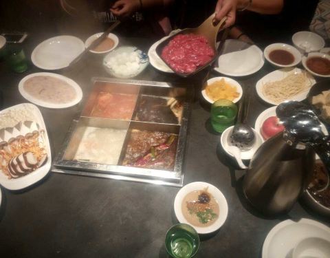 人挺多,门口不好停车,羊肉很嫩,毛肚用冰震着,一直都脆脆的,还贴心的给调了酱,喜欢四格锅里的西红柿锅,酸酸甜甜的,很好。只不过,结账的时候,一直推荐会员卡,16块开卡,享受会员价,还返券,但是还是觉得团购合适些。