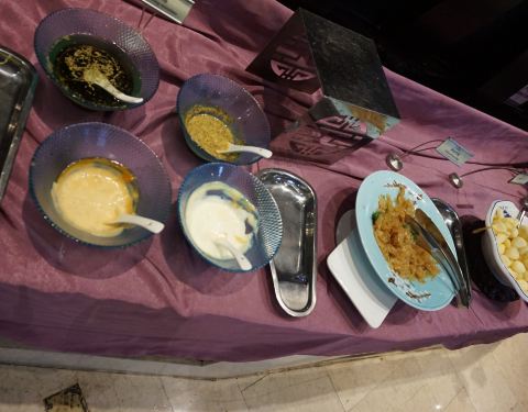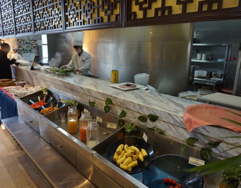 - 主要分主食、面包、饮料、水果、炒菜、冷菜、蔬菜等区域,餐厅内的补菜速度很快,所以不用担心晚去了...