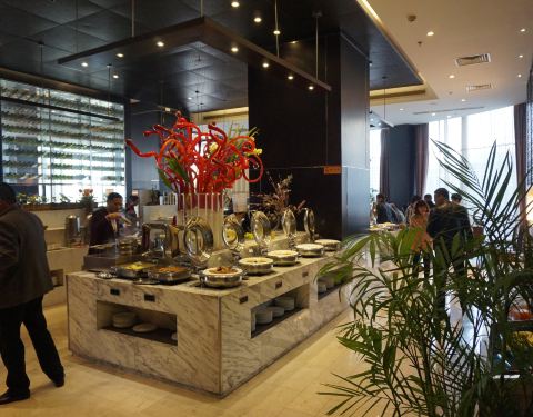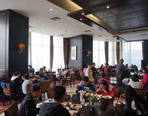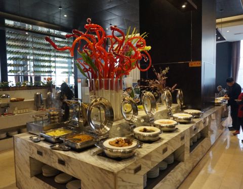 无锡鼎尚皇冠酒店位于无锡东亭中路20号,无锡地铁2号线的柏庄站和东亭站到酒店比较近,大概1公里,自驾游的游客会比较舒服,因为酒店有免费停车场。酒店前台位于一楼大厅的右侧,前台旁边还有沙发可以休息,check in的办理速度很快,check in后,前台会给一张房卡和第二天的早餐券2张,早餐的用餐地点是2楼的宝莱娜西餐厅,用餐的时间为早晨6点30分到9点30分。进餐厅前,需要把餐券交给服务员。餐厅内很宽敞明亮,早餐时间,主要分主食、面包、饮料、水果、炒菜、冷菜、蔬菜等区域,餐厅内的补菜速度很快,所以不用担心晚去了餐品减少。