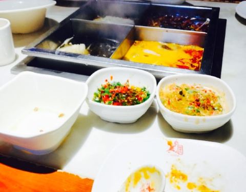 酱料都很足,可以自己调喜欢的味道,食材比较新鲜的,鸳鸯锅不会很辣