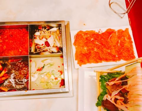 - 酱料都很足,可以自己调喜欢的味道,食材比较新鲜的,鸳鸯锅不会很辣