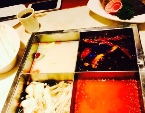 位置很好找,在教堂附近,就是人比较多,店里面的光线比较暗。酱料都很足,可以自己调喜欢的味道,食材比较新鲜的,鸳鸯锅不会很辣。