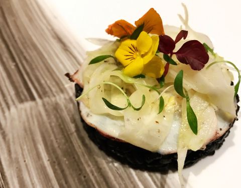 位于宝龙艾美酒店的味美西餐厅,门面不大,进门别有洞天,非常西班牙,开放式的厨房干净清爽。 选了一款适合女孩子的酒,Lolea No1,有肉桂的成分,像热红酒的口感,很舒服。 餐前面包松软酥脆,色拉里居然还有跳跳糖,惊喜噢,忍不住撩了好几叉。 tapas,颜值颇高,两款tapas口味各不相同,鱼肉酸爽开胃;另一款偏甜可爱,味蕾丰富。现在推出的98啤酒畅饮蛮划算的,还能加三款小食套。 单人份的黑与白,选用日本刺身带子加上墨鱼酱,再放上鱼子酱,一口满足。 白金枪鱼裹黑芝麻,配茴香泥,非常西式,鱼肉的鲜嫩和黑芝麻的香气相融,别有一番风味。 芝麻汤配核桃,特别之处在于芝麻汤是咸的,和普通的芝麻汤不太一样。 1kg牛排,很赞,配料是芥末汁和海盐,个人觉得加海盐很好吃,肉质的鲜嫩能更好的发挥,或加入芥末汁试试,不会很冲,恰到好处,非常创新。 来西班牙餐厅,当然是要点传染西班牙海鲜饭,用料丰富,鱿鱼圈、虾仁、淡菜、各种海鲜鲜美缤纷,米饭非常西班牙化,吃不惯也可以做的熟一些。 另一款墨鱼汁海鲜饭特别美丽,菜品做的像艺术品,鲜花点缀的很清新,口味很纯正。
