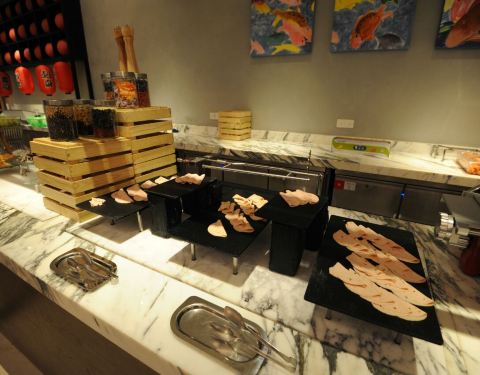 新食谱全日餐厅是宝龙艾美酒店里面最大的自助餐厅。主要是自助餐为主,包括早餐和午餐,还有丰富的晚餐。因为在里面住了一晚,所以很高兴吃到了早餐。而晚上的自助餐内容也是特别的丰富,从海鲜到烤肉到日本料理,在到中式菜品,还有很多甜品,非常棒的感觉。