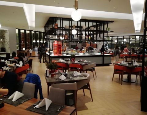 新食谱全日餐厅是宝龙艾美酒店里面最大的自助餐厅。主要是自助餐为主,包括早餐和午餐,还有丰富的晚餐。因为在里面住了一晚,所以很高兴吃到了早餐。而晚上的自助餐内容也是特别的丰富,从海鲜到烤肉到日本料理...