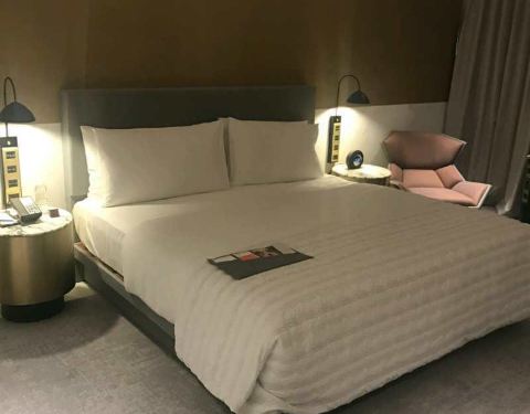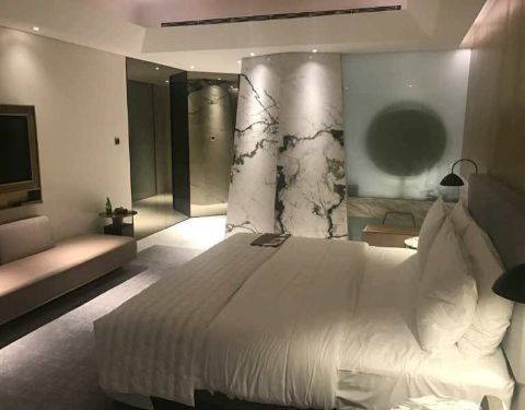 临时出差订的,官网价1500多,白金500欢迎分,送双早和一份水果,一瓶巴黎水,Q4活动的1000分,好像也是没到账。边上有个宝龙广场吃饭比较方便。倾斜突出的是淋浴房,右边黑白色打开的是迷你吧。大理石装修比较突...