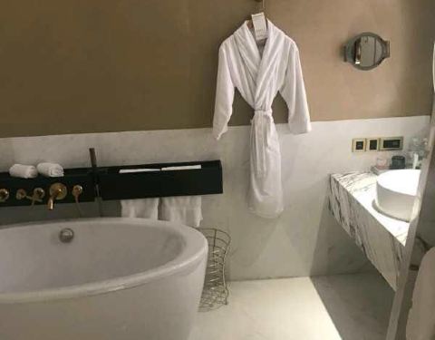 临时出差订的,官网价1500多,白金500欢迎分,送双早和一份水果,一瓶巴黎水,Q4活动的1000分,好像也是没到账。边上有个宝龙广场吃饭比较方便。倾斜突出的是淋浴房,右边黑白色打开的是迷你吧。大理石装修比较突兀,但又是让人弹眼六睛的地方。