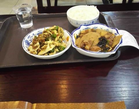 又到了晚饭时间,又纠结于一个人吃什么,在万达广场周边晃悠了很久,看到了华味佳大食堂,人很多,就这了。这是家中餐快餐店,自助取餐然后结账。店铺挺大的,干净整齐。菜的味道不错,价格实惠。