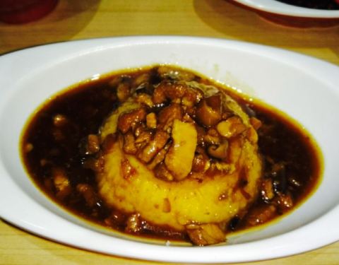 屯里大润发一楼,以前就和妈妈来过一次,老太太很开心。大冷天进屋服务员先倒碗热饺子汤。服务周到热情。店面整洁整洁。饺子不用说了,三鲜(里面一个大虾仁),西芹鲜肉等都特别入味。他家的酱大骨也是一绝,肉烂味香(15元一块有点小贵)。鹅腿肉和麻将瓜丝豆皮也不错。总之他家是那种不适合喝酒但去了以后还想去的店。