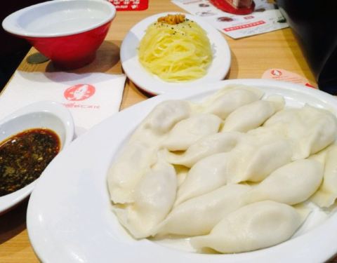 随处都能看见喜家德水饺。一直没有机会吃。话说那天练完瑜伽,真的是饿了。在吉野家和喜家德水饺之见选这里了。环境整洁卫生。透明玻璃能看见后厨。服务态度特别的好。吃的酸菜猪肉的,非常腻。十分不入味。因为说是新品种,就点了。结果超级超级腻。能清清楚楚的看到里边的大肥肉。酸菜本身酸是可以解腻的,可还是那么腻,可想而知是放了多少肥肉。土豆丝还不错?? 。咸口的,微麻。松子是优点。饺子汤也好喝。热腾腾的喝上一口原汤化原食。还解腻。