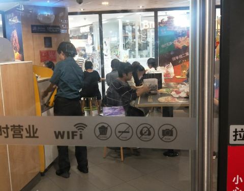 店里面功能布局也不错,可扫码点餐,店内提供充电宝。24小时营业,晚上来往人流量很多