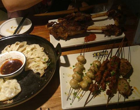 强烈推荐锅贴,特别好吃,今天烧烤忘记说要加辣椒了,所以吃着有点腻,羊腿份量很足,一个人吃不完,建议最好是两个人吃一个,对了,牛肉串也是非常好吃