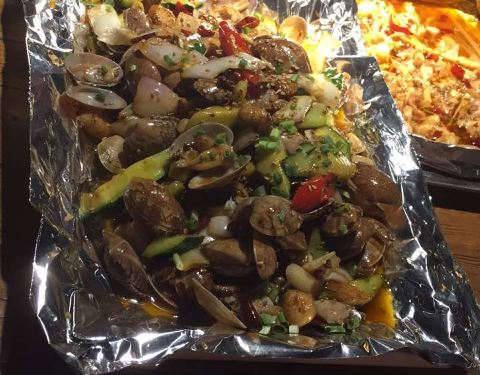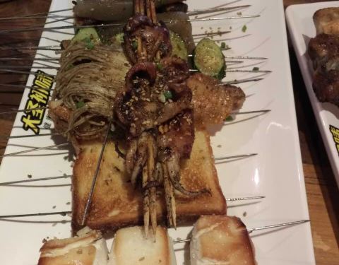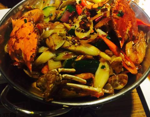 以前的海鲜锅分量超级足,今天完全感觉吃了个假的。下面全是酸和洋葱,烧烤和粥还不错,总之还行吧!
