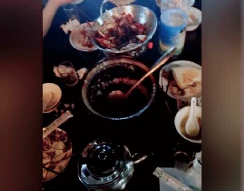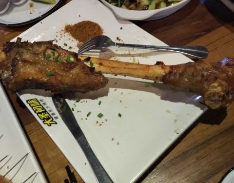 - 强烈推荐锅贴,特别好吃,今天烧烤忘记说要加辣椒了,所以吃着有点腻,羊腿份量很足,一个人吃不完,...