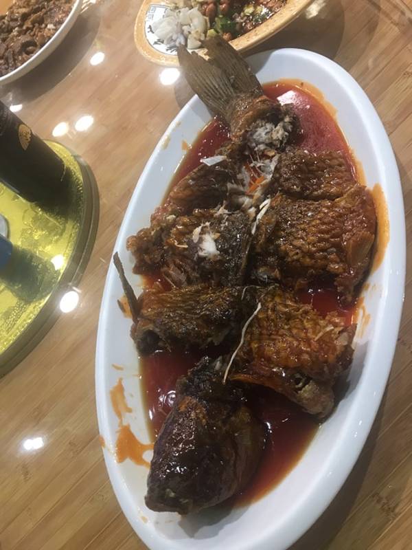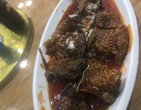 第二次来了,现在改成津菜了,还不错。环境也很好,还有个小厅,大椅子坐着很舒适。这个好像是最大的包间,要提早预约。娃娃吃完在这自己玩,不用担心跑出去碰着。特色增蹦鲤鱼不错。上菜挺快的。爸爸过生日,餐馆也没送碗长寿面,一般菜馆都会送的。扣肉还围了一圈小兔子,漂亮,并且里面还有豆馅,肉很烂,不会腻。油脂饼很可口,不腻,脆脆的还很香。苦尽甘来,苦瓜就一点苦味了。炸银鱼很嫩。老醋六样比其它酒家好吃,有墨鱼仔和鱼皮。菜价小贵。