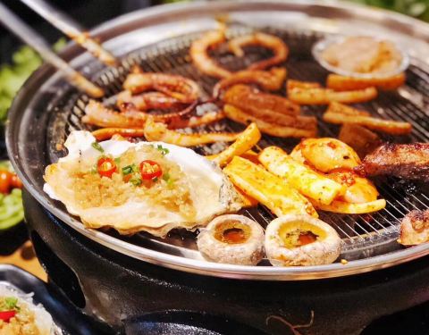 ...,极炙烤肉非常的不错,生蚝扇贝吃起来特别鲜 极炙小方块 红酒雪梨 芝士面包片都喜欢 吃烤肉开心