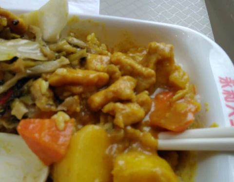 点了一份咖喱鸡肉饭套餐还阔以。本来想点面的!后来想想还是套餐比较合算。