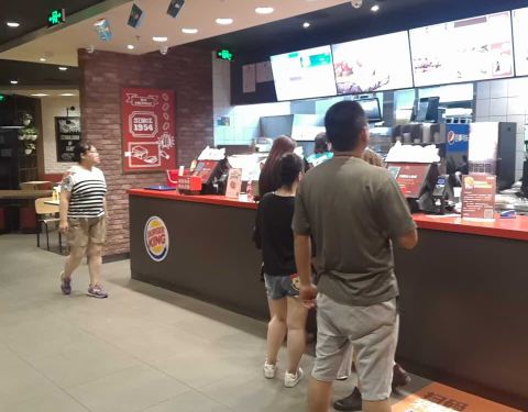 店里的装饰配上独特的建筑街区,显得节日气氛特别浓郁!店里人少,本来这一片人就不多,空空荡荡的没有几家店铺,倒是有很多点外卖的,看到一直有外卖员进进出出!平时在市里也是喜欢吃汉堡王多过肯德基麦当劳,尤其喜欢汉堡王的小吃,洋葱圈、霸王鸡条等,特别好吃!