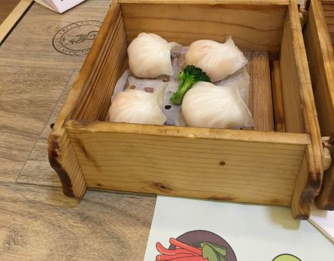 水晶虾饺是必点,皮薄虾仁弹牙,粤式正宗煎包很新鲜,口感常规水平云吞粉只能说云吞馅料个头大内容丰富,粉味已经湖北化,汤汁一般,没吃完招牌炒米粉搭配的辅料破坏口感,极少的虾仁算新鲜可以充数,火腿肠完全不能下咽,小蛋皮如摆盘毫无生机,几条肉丝吃不出是肉还是啥子,逃不出被扔掉的命运。叉烧是热乎乎的,没有粤式的水准,肉熟未浸味,更没有蘸的甜酱等佐料。