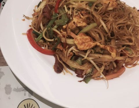 餐厅在广场5楼,热乎乎的酥皮菠萝油焦软奶香,配上黄油,入口即化。水晶虾饺每个虾恔都有满满的三颗虾仁!干炒牛河相对来说就油了点点,不过牛肉片大,味道还是不错的