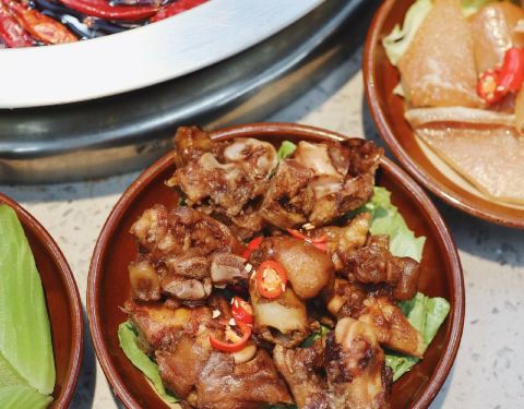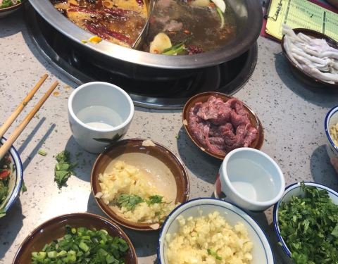 鸿姐老火锅 重庆火锅 很热门 在一个不起眼的拐角处 中午人很多 幸亏来的比较早 很快入席 骨汤鸳鸯锅 但是似乎上错了 上成了鸡松茸鸳鸯锅 里面还有一小块鸡块 嫩牛肉 一小碟 不过比那些平铺一层薄薄的实在些 鲜虾 个头不错 但是烧煮后有点碎 牛蛙 冰冻款 和外面差不多 蓬蒿菜 烫一烫蛮不错 红糖冰粉 火锅的御用甜品 蒜泥香油碟 唯一的选择 口罩时期的肆无忌惮吧 街边排档的随意感