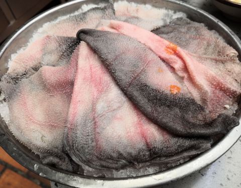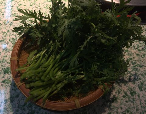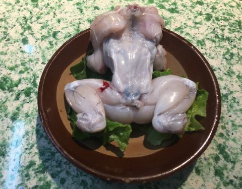 不过比那些平铺一层薄薄的实在些 鲜虾 个头不错 但是烧煮后有点碎 牛蛙 冰冻款 和外面差不多 蓬蒿菜
