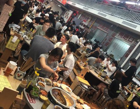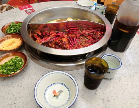- 又是重庆火锅,现在怎么这么多人喜欢重口味呀?空气就觉得有点呛,衣服上都是火锅味