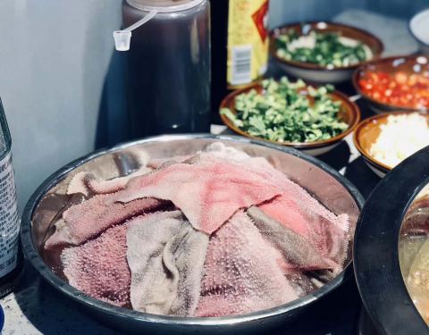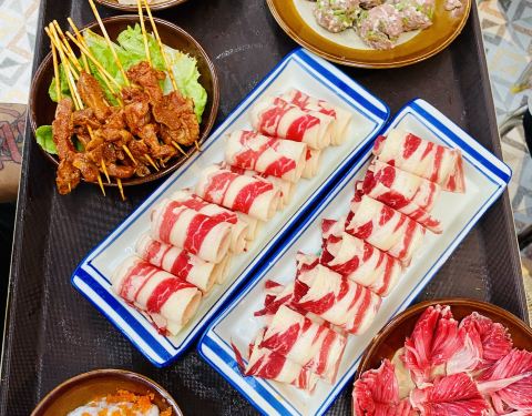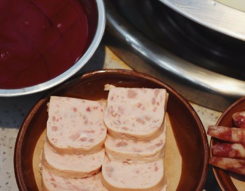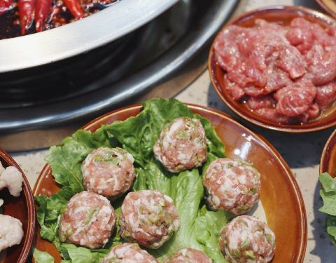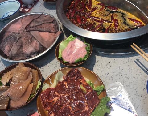之前有吃过一次,所以点单也是熟门熟路。血毛肚、千层肚、鲜鸭血、嫩牛肉、耙牛肉、鲜牛脊髓、火锅牛排、重庆滑肉片、午餐肉、贡菜丸子、鱼籽虾滑那是一样不少,整整齐齐地装在盘子里端上桌。每一样食材都很新鲜...