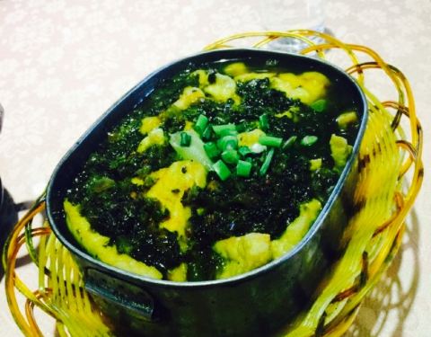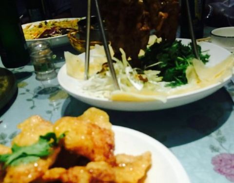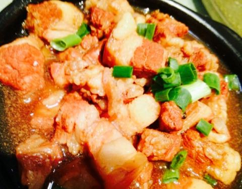 去办事中午饭就定在这边吃,有楼上楼下两层,为了方便在楼下吃的,不过有时候开门有风,作为都是长沙发很舒适,桌子也很宽阔,应该是6人位,两个人点了一份拆骨肉白菜粉条,一个铁板豆腐,还点了一份腊八蒜,主食点的腊肉饭,菜上的很快,炖菜很软烂好吃,豆腐平时就不太喜欢感觉一般,腊八蒜特别爽口解腻,腊肉饭很香,米饭里浸透了咸肉的油汁晶晶亮,很可口,两个人没吃了,服务生态度很好。