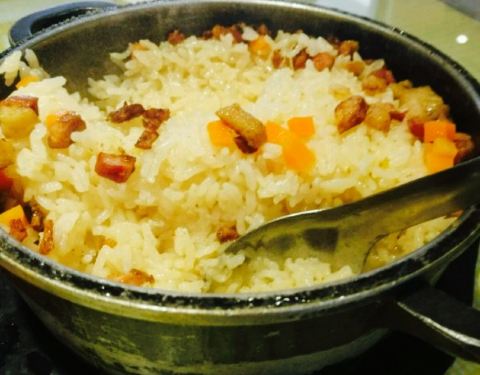 ...蒜特别爽口解腻,腊肉饭很香,米饭里浸透了咸肉的油汁晶晶亮,很可口,两个人没吃了,服务生态度很好