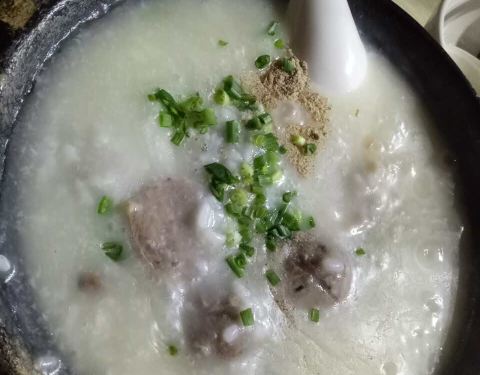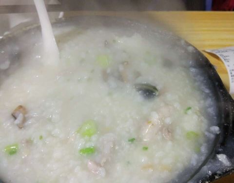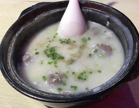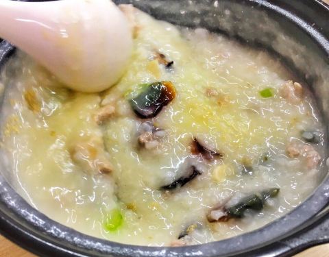 天天挤到爆棚,点了鸡爪,皮蛋瘦肉、牛蛙、鱼片、墨鱼丸粥,味道很好。
