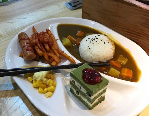 挺好的,开业5折,点的咖喱蛋包饭和咖喱猪扒饭,还有自助茶水,上餐很快