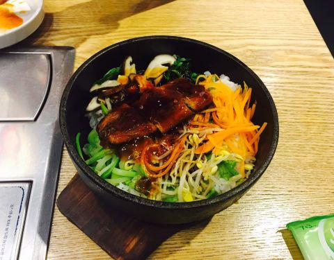 - ...,连锁经营,店面不大,内部装饰新潮靓丽,这里主打韩国风味烤肉,还有石锅拌饭、芝士年糕等韩式美食