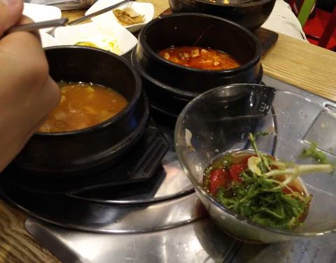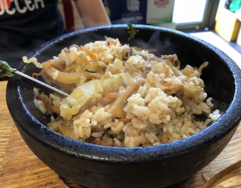 跟老公一直喜欢来这里吃石锅拌饭…… 「全州拌饭」趁热的时候赶紧拌,一定要拌到酱匀,不然很容易焦掉…… 「烧汁牛肉拌饭」老公不能吃辣,每次都吃这个拌饭,里面没有那个辣的拌饭酱。 「芝士玉米」其实我也吃不了辣,所以都要在全州拌饭里面加上芝士玉米,这样拌匀了以后,一点都不辣,还更有营养!