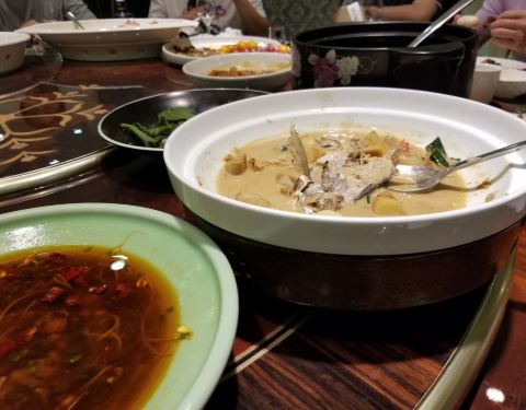 哎呀 朋友请我切中饭 在她公司附近的 近近滴 中午进店人蛮多的 没吃过这家店正好拔草 服务态度还可以的 喜欢清炒虾仁 虽然量不多的 不过我们人少还可以吃吃的 点心也蛮好吃的 就是吃不下了带回家 吃吃聊聊很开心 泡壶茶 我们下次再约过哟 鱼也很美味