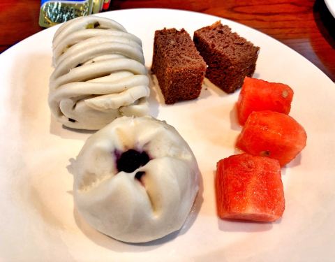 菜品挺多的,从港式点心到冒菜,从冷菜到甜品水果,最爱的居然是冒菜,加了粉丝和各种调料,太好吃了吧