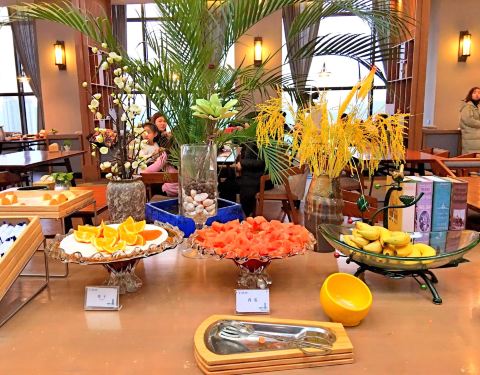 入住后闲来无事正好准备附近溜达 到了大堂想看看第二天早餐的所在地 就看到门口写着住客免费下午茶 一间房限定两位 就不由自主进去了 这个自助下午茶如果买团购是28元一位 吃的东西也算比较丰富 有咖啡 各种茶叶...入住后闲来无事正好准备附近溜达 到了大堂想看看第二天早餐的所在地 就看到门口写着住客免费下午茶 一间房限定两位 就不由自主进去了 这个自助下午茶如果买团购是28元一位 吃的东西也算比较丰富 有咖啡 各种茶叶自己泡 虽然味道麻麻地 还有好多小零食 水果若干 蛮适合在这里休闲一下聊聊天的