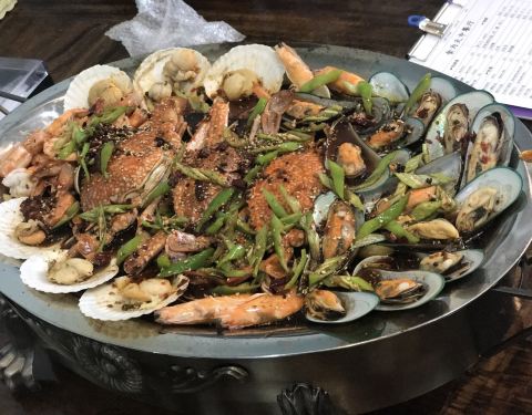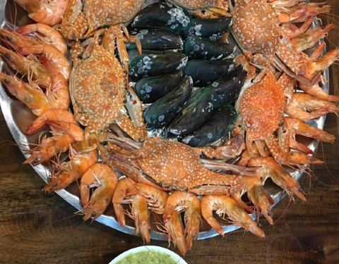 很中式的菜馆,食材很新鲜,酸辣土豆丝,白灼虾,小炒肉,拍黄瓜这些普通的家常菜都点了一遍,份量不错,我们全部把它光盘处理,对厨师们表示谢意,海鲜个头大,价格也不便宜,吃得很不错的。