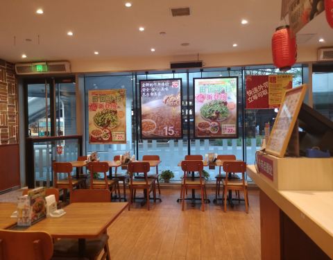 日式快餐店,环境很干净,翻桌率也很高,排队在门口排,会有服务员安排座位,总体体验很棒!饭类是招牌,各种肥牛饭首当其冲,日式温泉咖喱非常推荐,味道一点不因为是快餐就含糊,另外一些配菜小食套餐也挺好的。有小份、中份、大份和超大份可选,很赞!