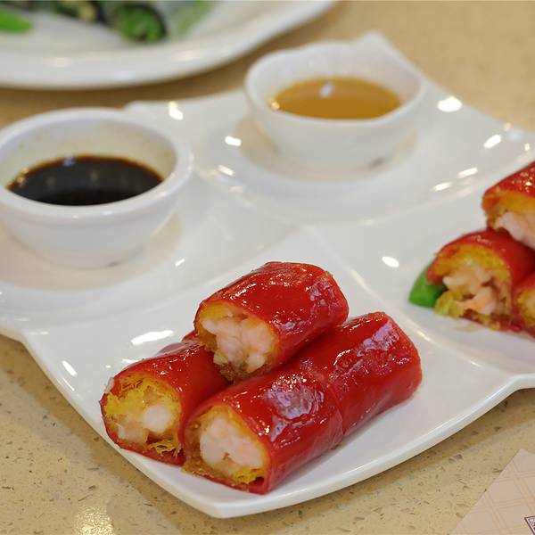 - 里面还有新鲜弹牙的鲜虾,肠粉一碟有10小件,分量很足 参汤四色虾饺,卖相很精致,虾饺皮很薄,里...