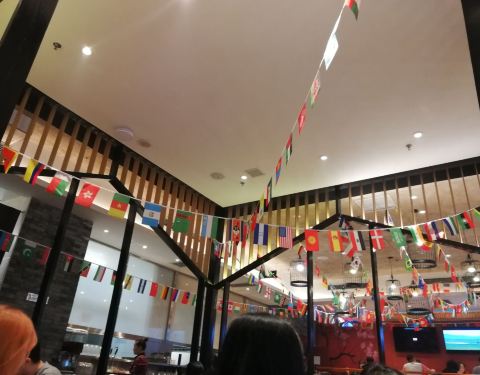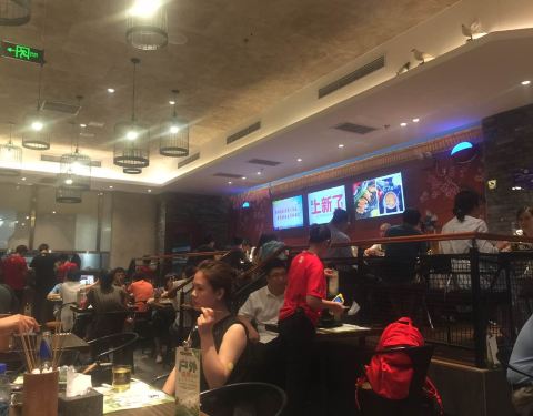 周末中午过去吃饭,去的还算比较早,还没有开始拿号等位,正值世界杯期间,里面装饰的很有气氛,环境相对来说比较嘈杂,里面的音乐声还有吵闹声感觉特别大,坐在对面说话都要很大声才能听见,希望以后商家能把声音调的小一点,另外上菜的速度也比较慢,串串的量都比较小,感觉特别迷你,看着不好看吃起来也不过瘾,希望以后也能改进点。