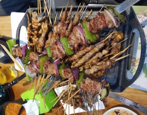 这么热的天,一点儿也没熄灭大家吃烧烤的热情。人很多,可以自助点餐,方便。可选择余地很大,猪肉,牛肉,羊肉,鸡肉,海鲜,蔬菜都有,啤酒种类也很多,不喝酒的有山楂汁,酸梅汤。由于开车来的,没喝啤酒,点...这么热的天,一点儿也没熄灭大家吃烧烤的热情。人很多,可以自助点餐,方便。可选择余地很大,猪肉,牛肉,羊肉,鸡肉,海鲜,蔬菜都有,啤酒种类也很多,不喝酒的有山楂汁,酸梅汤。由于开车来的,没喝啤酒,点的酸梅汤。