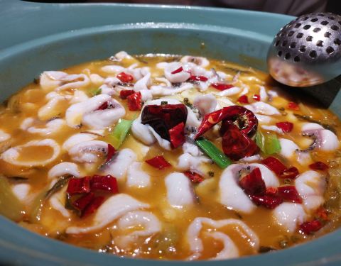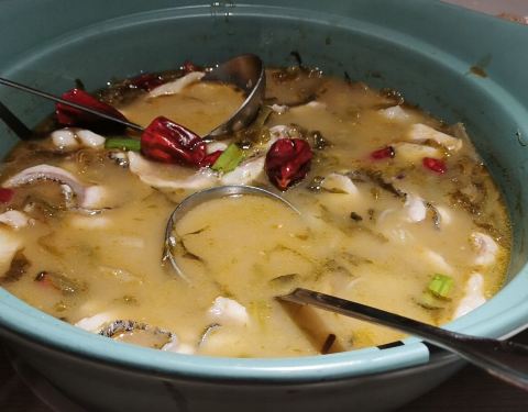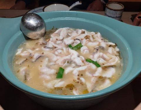他家的酸菜鱼还是很值得的,其他的菜下次会想换两个尝尝。叫了一份小份的酸菜鱼,上来感觉也蛮大一盘的,但他家就是配菜的选择没有很多。酸菜鱼上来的时候,服务员说建议先喝汤,他家酸菜鱼整体的油不是很大,喝完汤也不会觉得口渴,而且他家汤味道还蛮正的,特别酸爽,我真的一直从开始喝到最后,都没怎么喝茶。鱼很新鲜,鱼肉就不会碎,而且用的黑鱼,只有一些大刺,鱼皮QQ的。里面的酸菜蛮好吃的,但里面的泡萝卜就很一般,不知道是不是因为酸味全在锅里了,酸萝卜就没什么味道,宽粉也一般,特别款,特别厚,不是很入味,建议最好让它多泡一会在汤里。加了一份笋,春天的笋是真的好吃,特别鲜嫩,就是店家给的笋特别大一片哈哈哈。