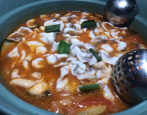 一家需要排队的酸菜鱼餐厅,据说是手工酸菜鱼比一般的鱼肉要薄,入口鲜嫩味道不错,点了小锅的番茄鱼,汤底浓郁有点酸酸的,很开胃。
