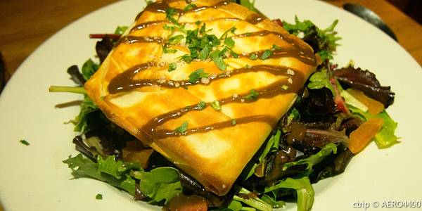波士顿周边区域的意大利餐厅,餐厅环境优雅,菜单的选择不多却不单调。免费面包配的蒜酱,越吃越香,受到一致好评。前菜的烤奶酪,酥脆多层的面包里融入浓香软糯的奶酪,沙拉的酱料清淡爽口。意大利调味饭,很香很美味,只是略微有点咸。